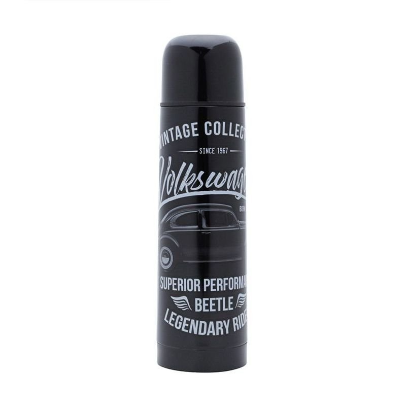 Garrafa térmica Fusca, aço inox, na cor cinza. Garrafa prática, versátil e perfeita para prolongar a temperatura das bebidas, são excelentes aliadas para quem gosta de tomar um café ou chá quente, ou um refresco geladinho a qualquer hora do dia.